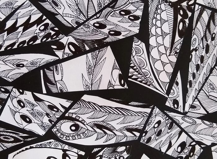 I like using different mediums. I believe that working in a single medium or style is restrictive to my artistic process. That's why my art pieces are so different, each reflecting my mood and state of mind when the piece was created. I enjoy working with acrylic paint and black ink pen the most.